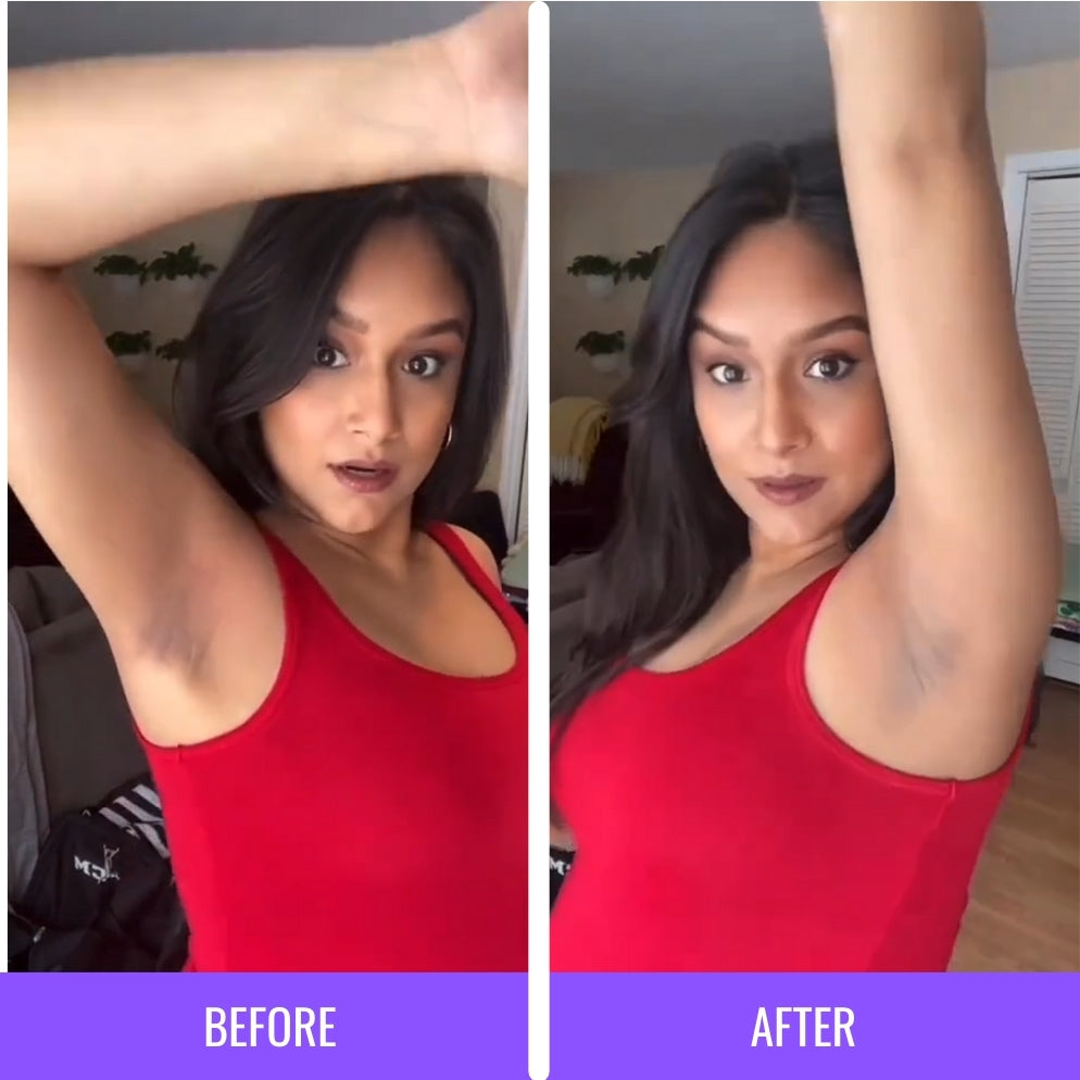 Deodorant concealer is a quick fix like makeup, and the deodorant brightener is the long term solution to reduce hyperpigmentation over time.