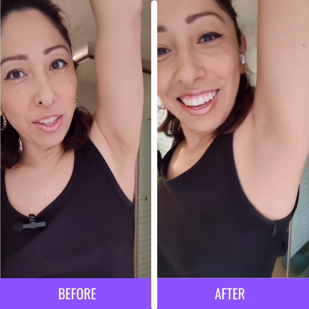 Deodorant concealer is a quick fix like makeup, and the deodorant brightener is the long term solution to reduce hyperpigmentation over time.