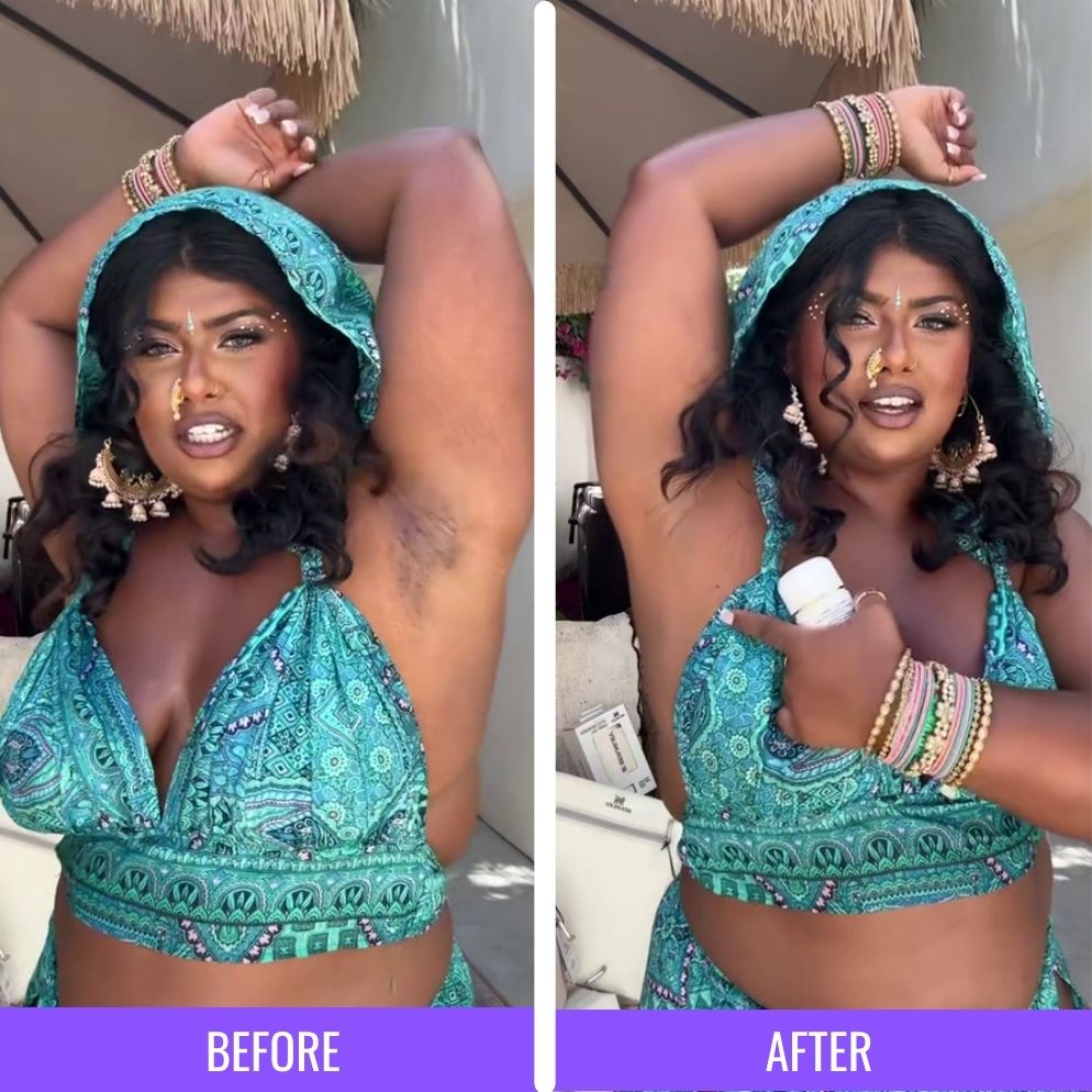 Deodorant concealer is a quick fix like makeup, and the deodorant brightener is the long term solution to reduce hyperpigmentation over time.